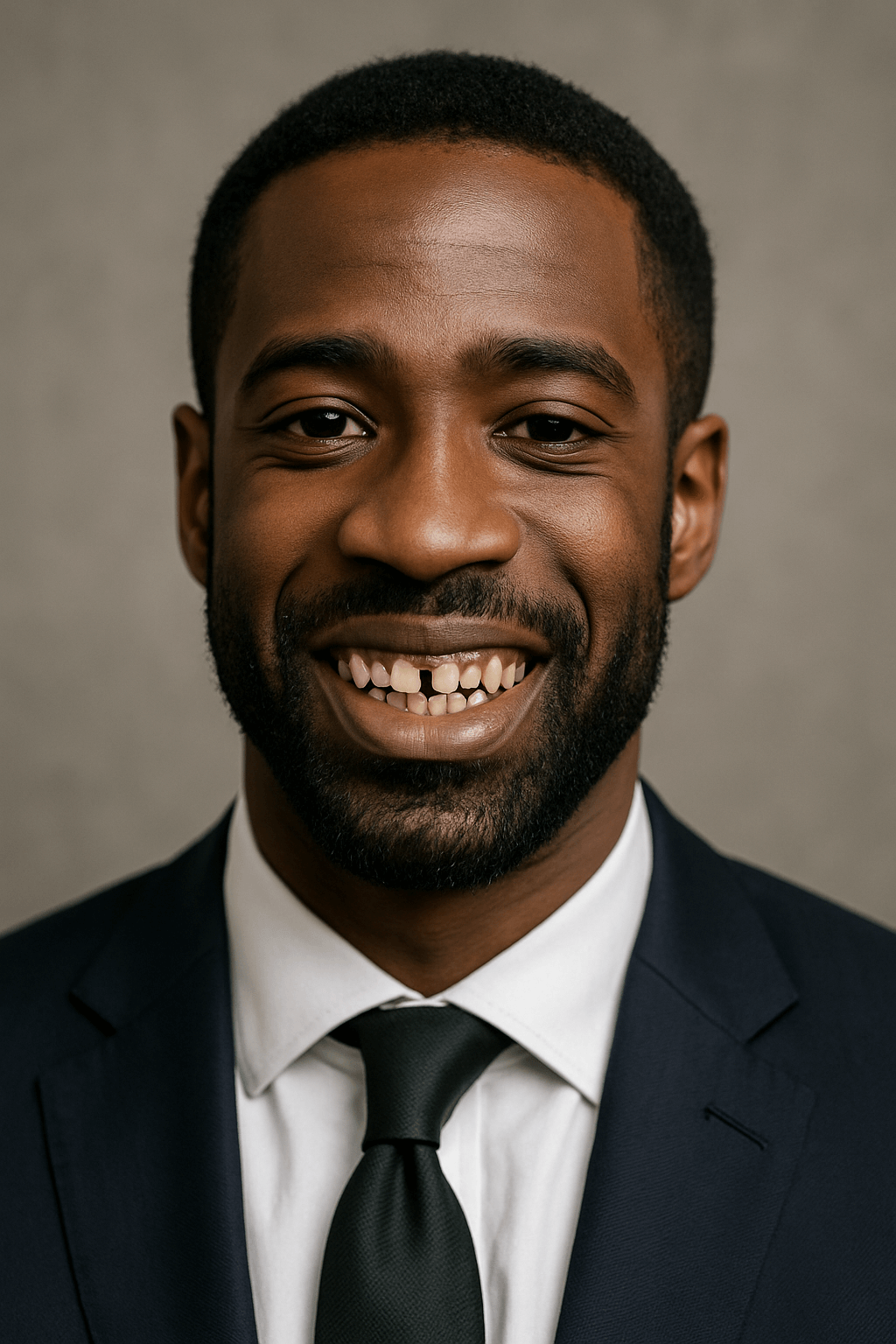 Before: Derrick wanted his smile to look as sharp as his suit. Minor misalignment and discoloration made him hesitate in photos.